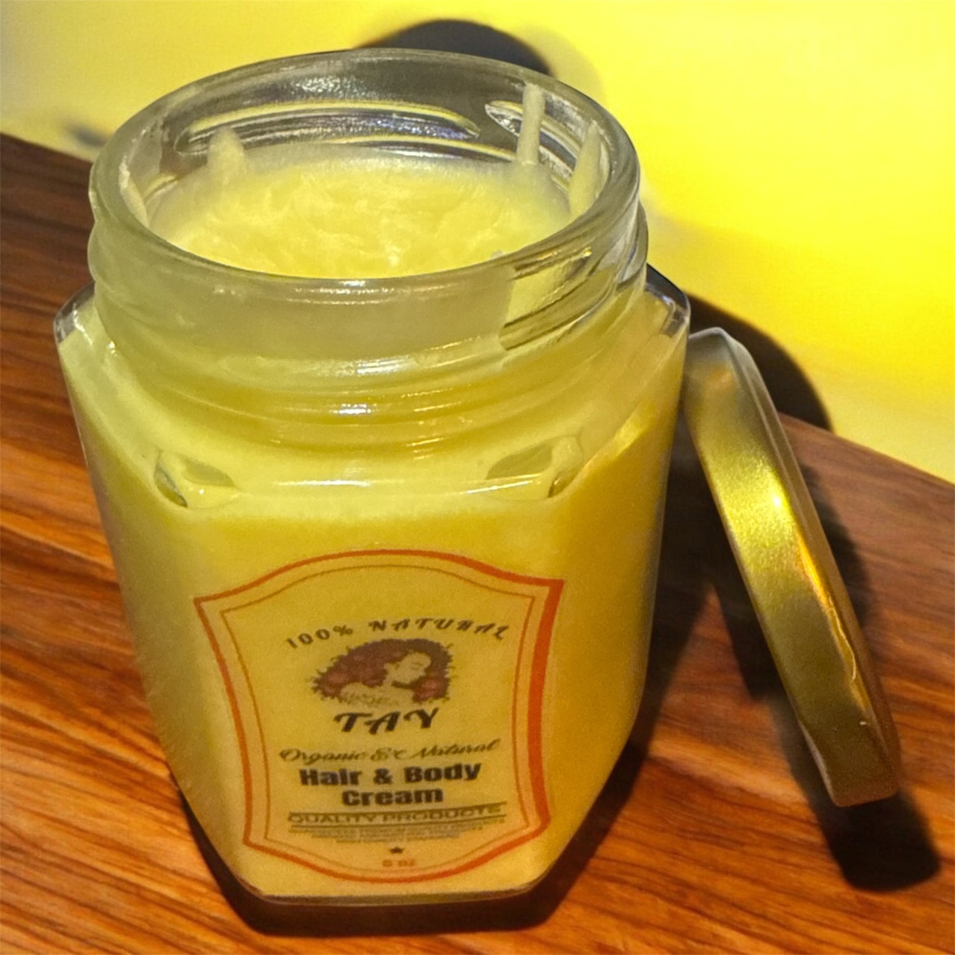 Our Hair & Body Cream combines the perfect blend of natural oils and botanicals to create a versatile moisturizer that works harmoniously with your skin and hair. Each batch is handcrafted to ensure the highest quality and freshness.
